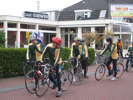 Bij vertrek werden de fietsers uitgezwaaid door Burgemeester van den Berg