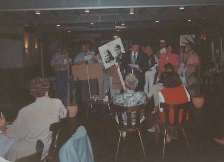 Rikus Veldkamp (Kassier) Jubileert met koor en orkest van de Boekhouding o.l.v. Flip Jonkman.
